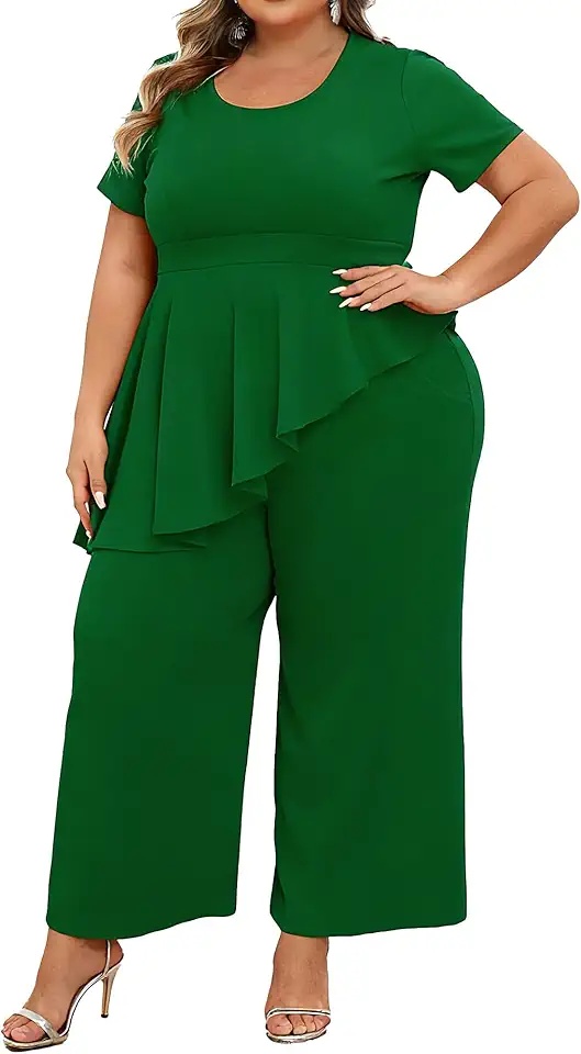 Women's Plus Size 2 Piece Outfits Suit Set Short Sleeve Peplum Top Straight Pants Sets Business Pantsuits